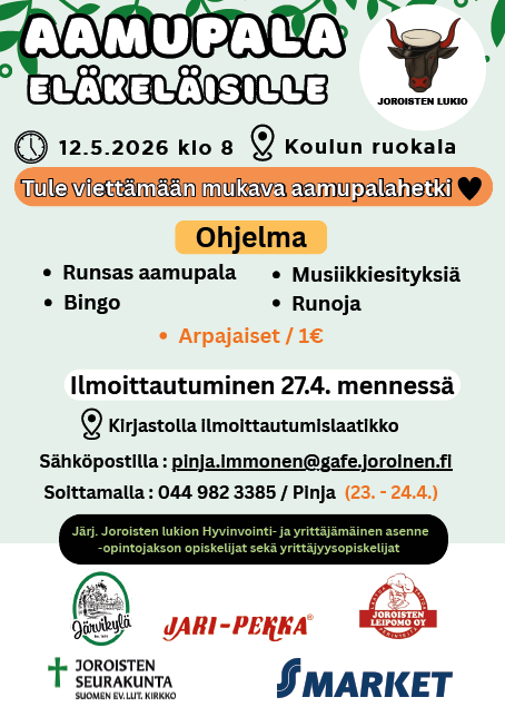 Lue lisää toiminnastamme näiltä sivuilta tai ota yhteyttä Joroisten Eläkkeensaajat ry:n toimihenkilöihin, niin saat lisätietoa yhdistyksemme tarjonnasta. Halutessasi liittyä jäseneksemme, liittyminen onnistuu allaolevalla painikkeella.