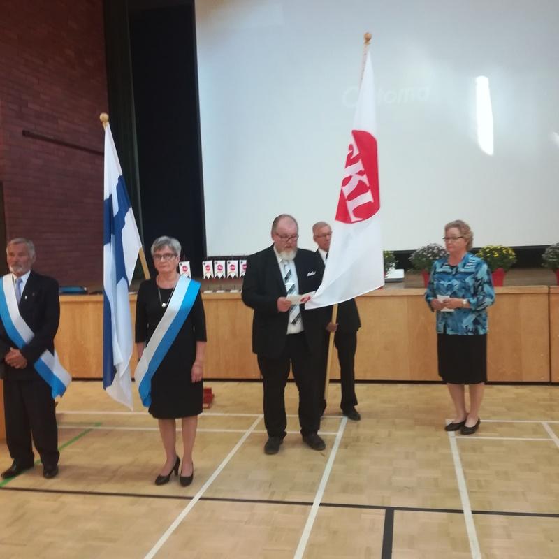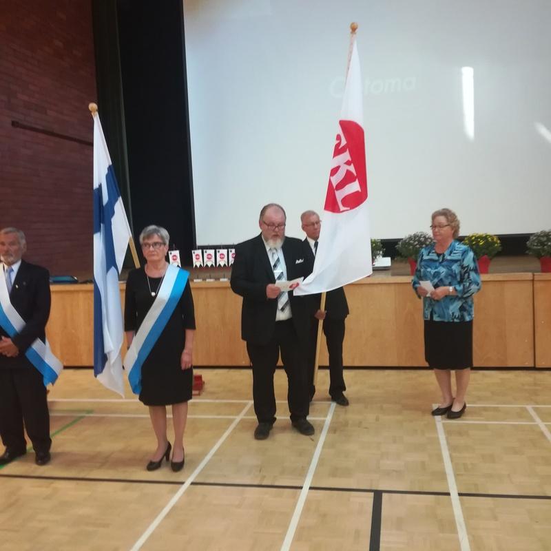 Lipun vihkii käyttöönsä EKL:n toiminnanjohtaja Timo Kokko ja lipun vastaanottaa EKL:n Mikkelin Piiri ry:n puheenjohtaja Leena Teittinen